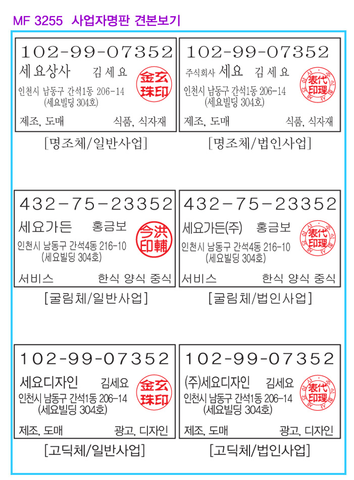 MF-3255ÀϹݻç¾÷ÀÚ¸íÆÇ(µµÀåÆ÷ÇÔ)