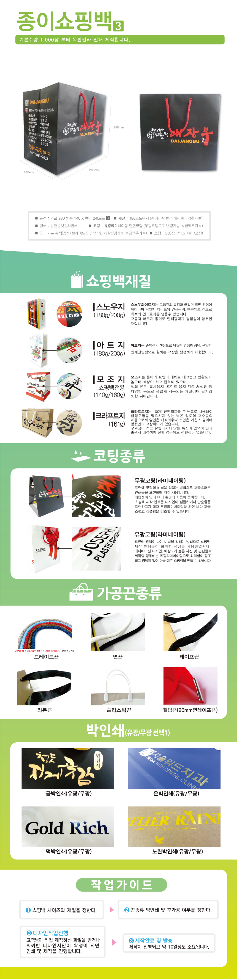 - Á¦Ç°ÀÇ »ö»óÀ̳ª Àμ⠻ö»óÀº ¸ð´ÏÅÍ»óÀÇ »ö»ó°ú ´Ù¼Ò Â÷À̰¡ ÀÖÀ»¼ö ÀÖ½À´Ï´Ù. (¸ð´ÏÅÍ»óÀÇ »öÁ¶ÇÕ(RGB)°ú ÀμâÀÛ¾÷ÀÇ »öÁ¶ÇÕ¹æ½Ä(CMYK)¹æ½ÄÀÌ ´Ù¸£¹Ç·Î ½ÇÁ¦ Àμ⠽à Â÷À̰¡ ÀÖÀ¸¸ç, ¸ð´ÏÅÍÀÇ ¸ðµ¨°ú ÇØ»óµµ¿¡ µû¶ó »ö»óÀÌ ÁøÇÏ°í ¹àÀ½ Á¤µµ°¡ Â÷À̰¡ ³¯ ¼ö ÀÖ½À´Ï´Ù.) - ÀμâÀÇ À§Ä¡´Â °øÁ¤°úÁ¤¿¡¼ ¿ÀÂ÷°¡ ³¯ ¼ö ÀÖÀ¸¸ç, Àμ⠽à ÀÛÀº Ƽ²ø ºÎºÐÀ̳ª ±ÜÈû, ¹Ì¼¼ÇÑ Á¡µéÀÌ ÀÖÀ» ¼ö ÀÖÀ¸¹Ç·Î ÇØ´ç »çÀ¯·Î ȯºÒÀÌ µÇÁö ¾Ê½À´Ï´Ù. - °í°´´ÔÀÇ ÃÖÁ¾ OK»çÀο¡ ÀÇÇÑ ÀÛ¾÷Àº Àý´ë·Î »ç°í󸮰¡ µÇÁö ¾Ê½À´Ï´Ù. ´ç»çÀÇ µðÀÚÀ̳ʰ¡ ¿ÀŸ ½Ç¼ö³ª ÀμâºÎºÐÀ» ´©¶ô½ÃÄ×´õ¶óµµ °í°´´Ô²²¼ ÃÖÁ¾ ½Ã¾È¿¡ µ¿ÀÇÇϽøé Àý´ë·Î Ã¥ÀÓÀ»ÁöÁö ¾ÊÀ¸¹Ç·Î ½Ã¾È È®ÀÎ ½Ã À¯ÀÇÇØ Áֽñ⠹ٶø´Ï´Ù. - °í°´ÀÌ Á÷Á¢ µðÀÚÀÎ ÀÛ¾÷ ½Ã ȨÆäÀÌÁö ¹× ´ç»ç¿¡¼ º°µµ·Î Àü´ÞÇØµå¸®´Â ÀÛ¾÷ À¯ÀÇ»çÇ×À» È®ÀÎÇϽŠÈÄ ÀÛ¾÷ÇϽñ⠹ٶó¸ç, À¯ÀÇ»çÇ× ºÒÀÌÇàÀ¸·Î ÀÎÇÑ Àμâ»ç°í ¹ß»ý ½Ã »ç°í󸮵ÇÁö ¾Ê½À´Ï´Ù. - ÀÎ¼â¹æ¹ý(uvÀμâ, ºÒ¹ÚÀμâ, ·¹ÀÌÁ®ÀÎ¼â µî ¸ðµçÀμâ)ÀÇ Â÷ÀÌ·Î ±³Á¤º»°ú ´Ù¼Ò ´Ù¸¥ Àμâ°á°ú°¡ ³ª¿Ã¼öÀÖ½À´Ï´Ù. - Á¦Ç°ÄÉÀ̽ºÀÇ ±Ô°Ý ¹× µðÀÚÀÎ, ¾Æ¿ô¹Ú½ºÀÇ »óǰ¼ö·®, Á¦Ç°³»ºÎÀÇ ³»¿ë¹°±¸¼º, ¼±¹°Æ÷ÀåÁö µîÀº º°µµÀÇ Å뺸¾øÀÌ º¯°æ µÉ ¼ö ÀÖ½À´Ï´Ù. - Á¦Ç°¿¡ µû¶ó ÃÖ¼Ò¼ö·®ÀÌ»ó ±¸¸Å½Ã¿¡µµ Àμâºñ°¡ Ãß°¡µÇ´Â Á¦Ç°ÀÌ ÀÖÀ» ¼ö ÀÖÀ¸¸ç, ÀϺÎÁ¦Ç°Àº µðÀÚÀκñ(½Ã¾ÈÁ¦ÀÛºñ)°¡ Ãß°¡µÉ ¼ö ÀÖÀ¸¹Ç·Î ±¸¸Å Àü È®ÀÎÇØ Áֽñ⠹ٶø´Ï´Ù.