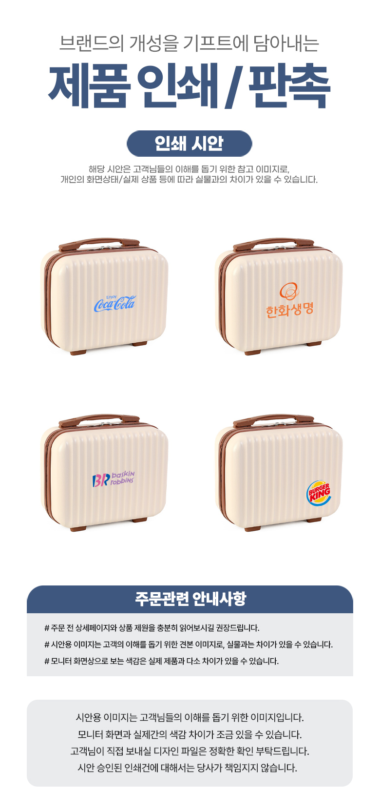 - °í°´ÀÌ Á÷Á¢ µðÀÚÀÎ ÀÛ¾÷ ½Ã ȨÆäÀÌÁö ¹× ´ç»ç¿¡¼­ º°µµ·Î Àü´ÞÇØµå¸®´Â ÀÛ¾÷ À¯ÀÇ»çÇ×À» È®ÀÎÇϽŠÈÄ ÀÛ¾÷ÇϽñ⠹ٶó¸ç, À¯ÀÇ»çÇ× ºÒÀÌÇàÀ¸·Î ÀÎÇÑ Àμâ»ç°í ¹ß»ý ½Ã »ç°í󸮵ÇÁö ¾Ê½À´Ï´Ù.