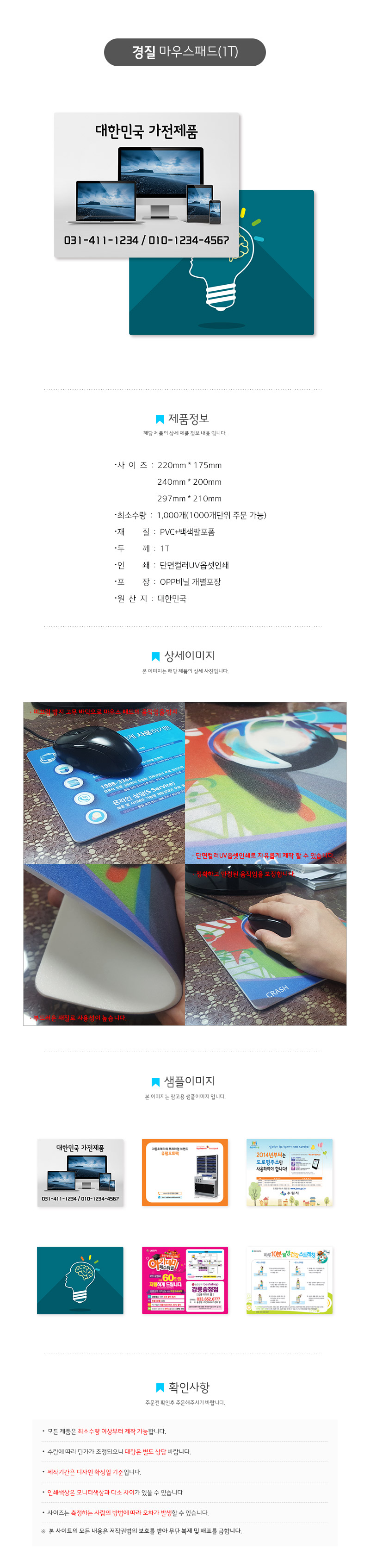 - Á¦Ç°ÀÇ »ö»óÀ̳ª Àμ⠻ö»óÀº ¸ð´ÏÅÍ»óÀÇ »ö»ó°ú ´Ù¼Ò Â÷À̰¡ ÀÖÀ»¼ö ÀÖ½À´Ï´Ù. (¸ð´ÏÅÍ»óÀÇ »öÁ¶ÇÕ(RGB)°ú ÀμâÀÛ¾÷ÀÇ »öÁ¶ÇÕ¹æ½Ä(CMYK)¹æ½ÄÀÌ ´Ù¸£¹Ç·Î ½ÇÁ¦ Àμ⠽à Â÷À̰¡ ÀÖÀ¸¸ç, ¸ð´ÏÅÍÀÇ ¸ðµ¨°ú ÇØ»óµµ¿¡ µû¶ó »ö»óÀÌ ÁøÇÏ°í ¹àÀ½ Á¤µµ°¡ Â÷À̰¡ ³¯ ¼ö ÀÖ½À´Ï´Ù.) - ÀμâÀÇ À§Ä¡´Â °øÁ¤°úÁ¤¿¡¼ ¿ÀÂ÷°¡ ³¯ ¼ö ÀÖÀ¸¸ç, Àμ⠽à ÀÛÀº Ƽ²ø ºÎºÐÀ̳ª ±ÜÈû, ¹Ì¼¼ÇÑ Á¡µéÀÌ ÀÖÀ» ¼ö ÀÖÀ¸¹Ç·Î ÇØ´ç »çÀ¯·Î ȯºÒÀÌ µÇÁö ¾Ê½À´Ï´Ù. - °í°´´ÔÀÇ ÃÖÁ¾ OK»çÀο¡ ÀÇÇÑ ÀÛ¾÷Àº Àý´ë·Î »ç°í󸮰¡ µÇÁö ¾Ê½À´Ï´Ù. ´ç»çÀÇ µðÀÚÀ̳ʰ¡ ¿ÀŸ ½Ç¼ö³ª ÀμâºÎºÐÀ» ´©¶ô½ÃÄ×´õ¶óµµ °í°´´Ô²²¼ ÃÖÁ¾ ½Ã¾È¿¡ µ¿ÀÇÇϽøé Àý´ë·Î Ã¥ÀÓÀ»ÁöÁö ¾ÊÀ¸¹Ç·Î ½Ã¾È È®ÀÎ ½Ã À¯ÀÇÇØ Áֽñ⠹ٶø´Ï´Ù. - °í°´ÀÌ Á÷Á¢ µðÀÚÀÎ ÀÛ¾÷ ½Ã ȨÆäÀÌÁö ¹× ´ç»ç¿¡¼ º°µµ·Î Àü´ÞÇØµå¸®´Â ÀÛ¾÷ À¯ÀÇ»çÇ×À» È®ÀÎÇϽŠÈÄ ÀÛ¾÷ÇϽñ⠹ٶó¸ç, À¯ÀÇ»çÇ× ºÒÀÌÇàÀ¸·Î ÀÎÇÑ Àμâ»ç°í ¹ß»ý ½Ã »ç°í󸮵ÇÁö ¾Ê½À´Ï´Ù. - ÀÎ¼â¹æ¹ý(uvÀμâ, ºÒ¹ÚÀμâ, ·¹ÀÌÁ®ÀÎ¼â µî ¸ðµçÀμâ)ÀÇ Â÷ÀÌ·Î ±³Á¤º»°ú ´Ù¼Ò ´Ù¸¥ Àμâ°á°ú°¡ ³ª¿Ã¼öÀÖ½À´Ï´Ù. - Á¦Ç°ÄÉÀ̽ºÀÇ ±Ô°Ý ¹× µðÀÚÀÎ, ¾Æ¿ô¹Ú½ºÀÇ »óǰ¼ö·®, Á¦Ç°³»ºÎÀÇ ³»¿ë¹°±¸¼º, ¼±¹°Æ÷ÀåÁö µîÀº º°µµÀÇ Å뺸¾øÀÌ º¯°æ µÉ ¼ö ÀÖ½À´Ï´Ù. - Á¦Ç°¿¡ µû¶ó ÃÖ¼Ò¼ö·®ÀÌ»ó ±¸¸Å½Ã¿¡µµ Àμâºñ°¡ Ãß°¡µÇ´Â Á¦Ç°ÀÌ ÀÖÀ» ¼ö ÀÖÀ¸¸ç, ÀϺÎÁ¦Ç°Àº µðÀÚÀκñ(½Ã¾ÈÁ¦ÀÛºñ)°¡ Ãß°¡µÉ ¼ö ÀÖÀ¸¹Ç·Î ±¸¸Å Àü È®ÀÎÇØ Áֽñ⠹ٶø´Ï´Ù.