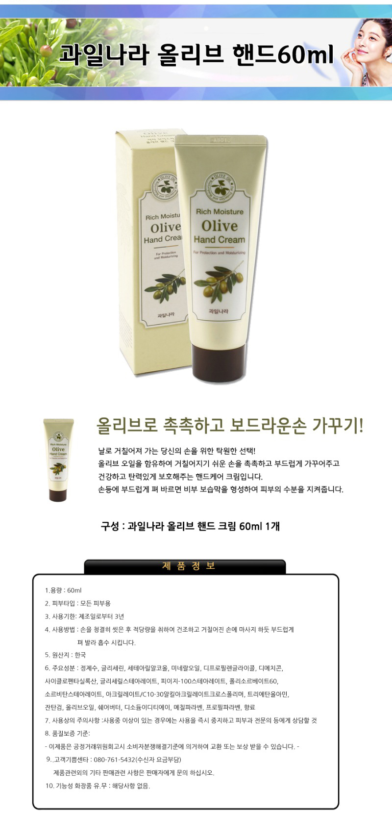 °úÀϳª¶ó olive ¿Ã¸®ºêÇÚµåÅ©¸²60g