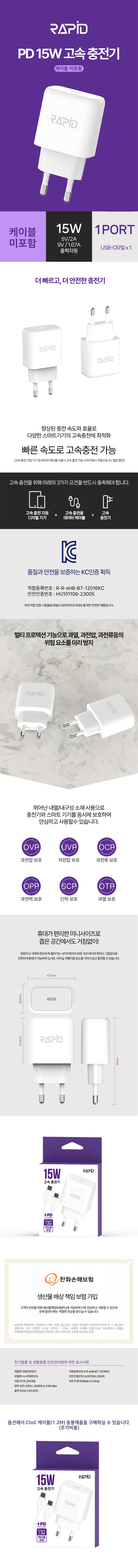 ¶óÇÇµå °¡Á¤¿ëÃæÀü±â PD15W 1Æ÷Æ®(C)