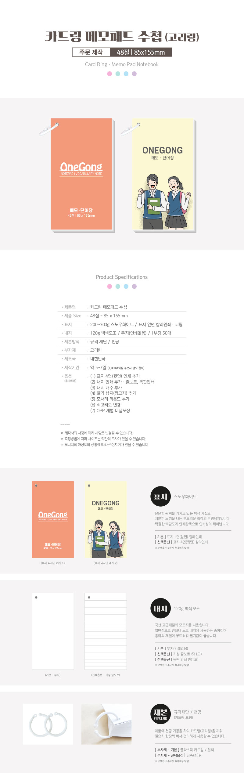 Ä«µå¸µ ¸Þ¸ð ÆÐµå ³ëÆ® ´Ü¾îÀå / 48Àý 85*155mm